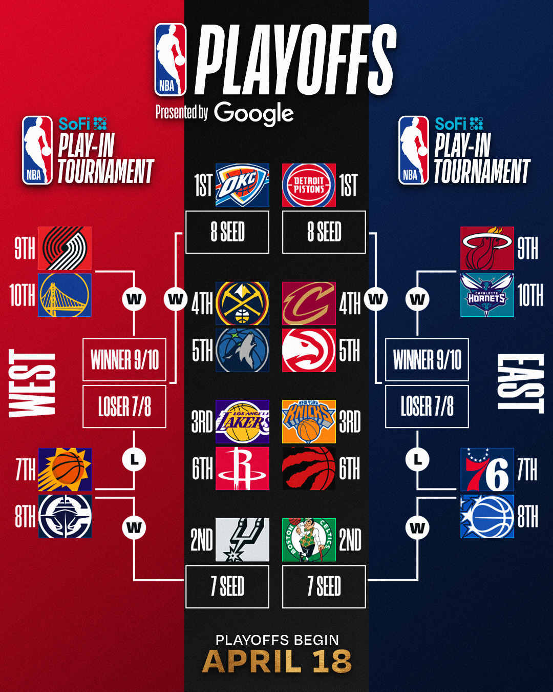 3、火箭赢球+自己输球,快船被锁在附加赛区(西部第7-10)。